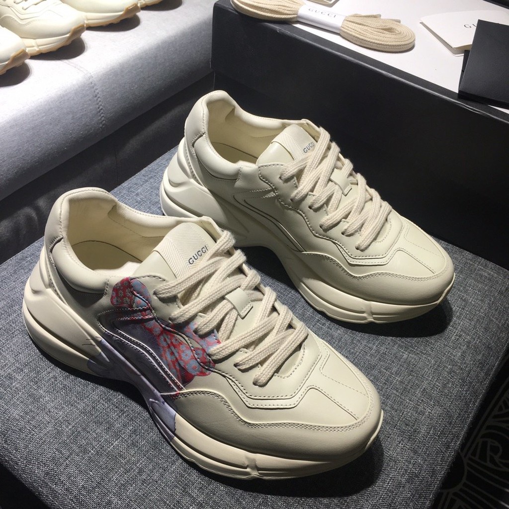 Select Sneaker Size Women US10UK7EU40 Women US5UK2EU35 Men US12UK11EU45 Men US11UK10EU44 Men US10UK9EU43 Men US9UK8EU42 Men US8UK7EU41 Men US7UK6EU40 Men US6UK5EU39 Women. Gucci GG Rhyton Sneaker. Ad O Amortecimento Revolucionário que Atravessa Gerações. Gucci Wmns Rhyton Iridescent Logo 398. Designed with a thick sole and bulky construction the sneaker continues to embody the 90s influence. Similar products also available. Shop the Womens Rhyton sneaker with cat eyes in white at GUCCICOM. Ivory white artificial leather x Bananya Rhyton sneakers from GUCCI featuring cartoon print logo print to the side logo patch at the tongue front lace-up fastening and rubber sole. Choose an option Size 38.